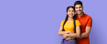 Happy Young Couple Posing Together With Cheerful Smiles Against a Colorful Background