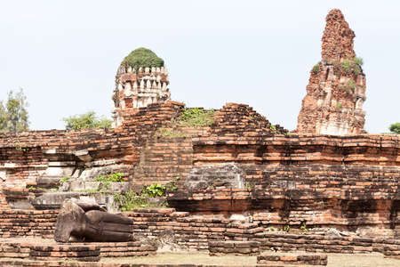 Ruin of ancient buddha temple in Ayutthaya thailand