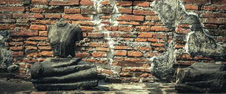 Buddha decay , THAILAND Ruins and Antiques at the Ayutthaya Historical Park , banner