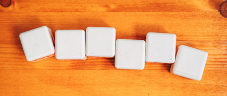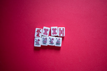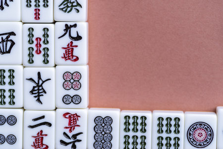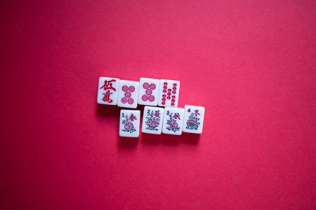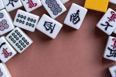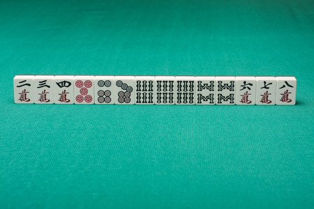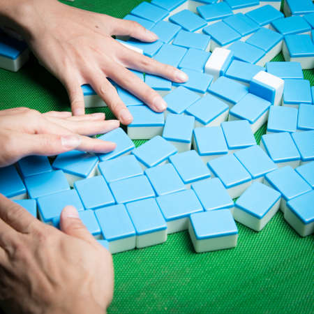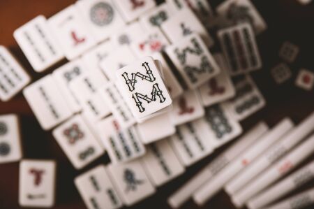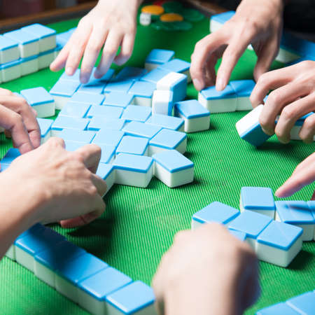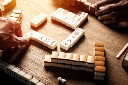 Playing Mahjong on wooden table. Mahjong is the ancient asian board game.