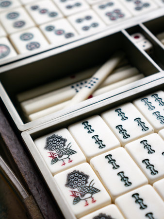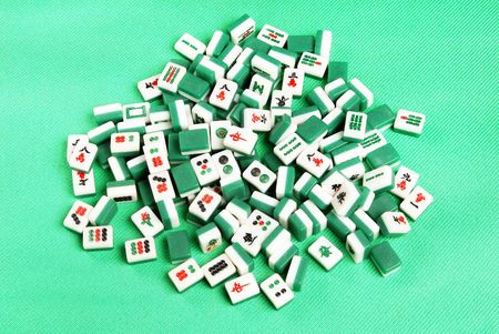 Equipments for Mahjong game. Mahjong is the ancient asian board game.