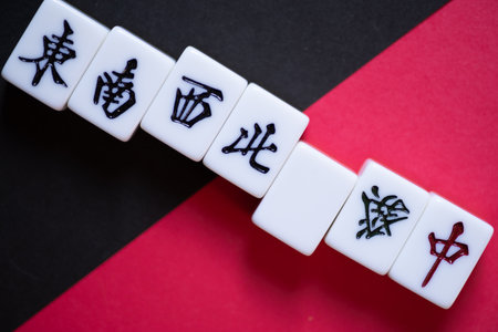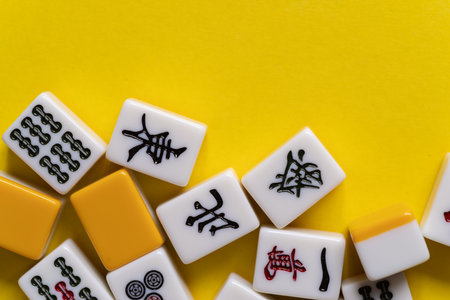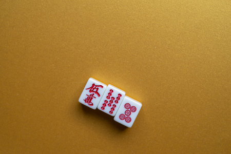 A Mahjong Or mah-jongg Game Pieces and Dice Close Up