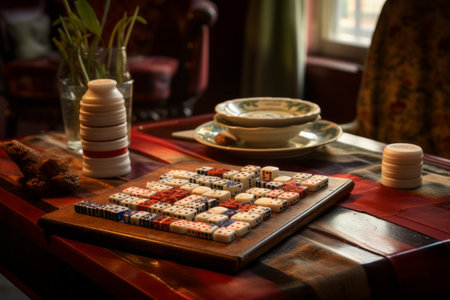 tiles for playing mahjong on the table