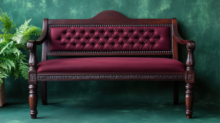 This exquisite vintage sofa features deep red upholstery and intricate wood carvings, perfect for adding elegance and comfort to any interior space.