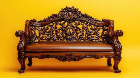 This striking Victorian style wooden sofa showcases intricate carvings and rich details, perfect for interior design projects and home decor inspiration.