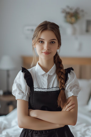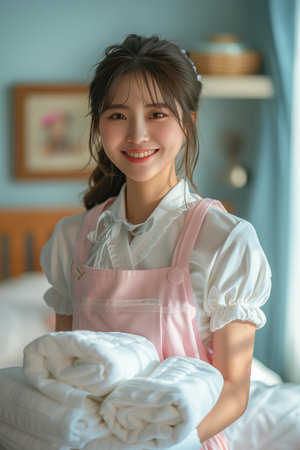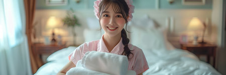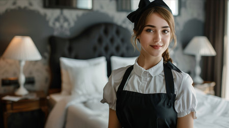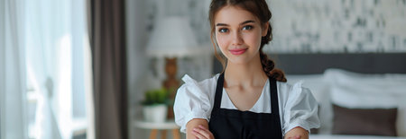 Organized Professional chambermaid. Work home staff. Generate Ai