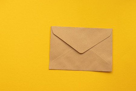 Envelope with postage stamp on yellow background