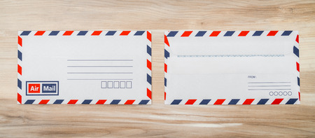blank airmail enveloope on wooden background