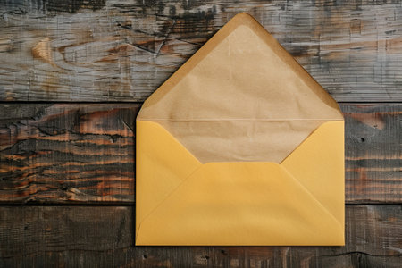 Vintage open envelope on shabby wooden background