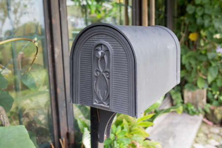 Black and white of mailbox in front of the house with sunlight and beautiful natural background