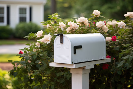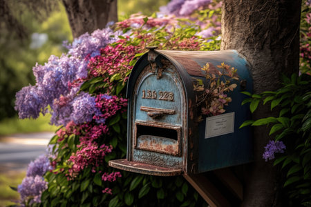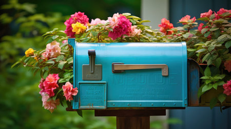 mailbox surrounded by blooming flowers and greenery, created with generative ai
