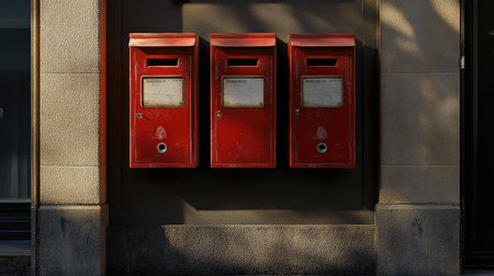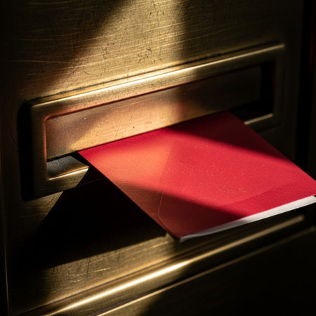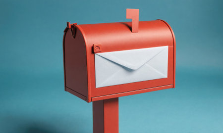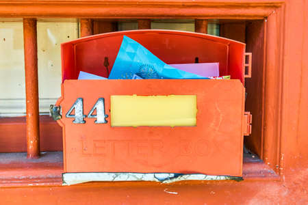 red mailbox with documents overflowing, mailbox hasn't been opened for a long time, red mailboxes on red walls