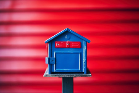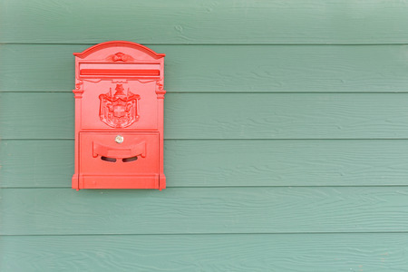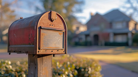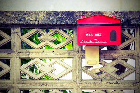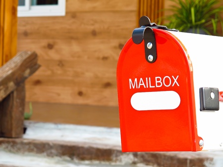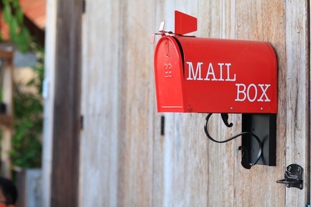Red mailbox in front of the house with sunlight and beautiful natural background