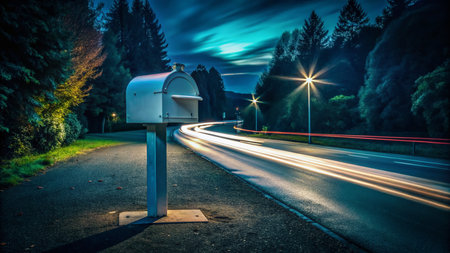 Long Exposure Photo of a White Mailbox at Night with Light Trails