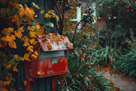 A vibrant red post box stands out amidst lush green foliage, capturing a sense of nostalgia and rural beauty. This charming scene highlights traditional mail delivery.