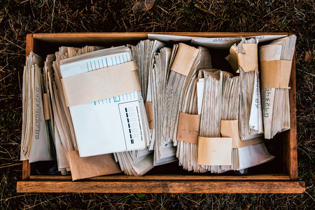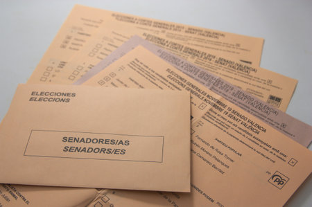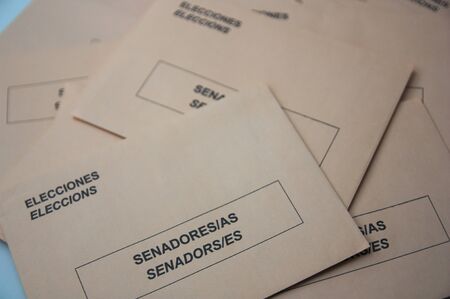 November 2019. Valencia, Spain. Different ballots for the election of the Senate of Spain throughout the years 2015, 2016, and 2019, together with the corresponding envelope for voting by the Spanish citizen.
