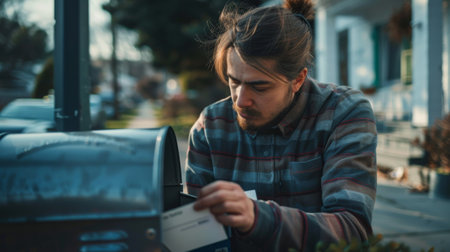 A man is shown inserting mail into a mailbox. This action signifies the process of sending correspondence through the postal system. The mans hand is seen holding the envelope as he deposits it into the box.