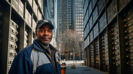 A dedicated postal worker navigates the bustling city streets, rain or shine, ensuring timely and secure mail delivery This photo captures the daily service, reliability, and dedication of postal workers in keeping the vital flow of communication moving Their commitment to providing a vital service for everyone is evident in their unwavering efforts AI Generative