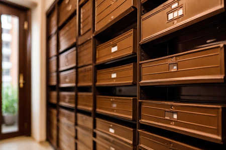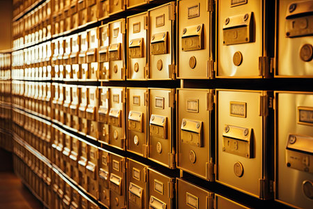 Rows of Secure Metallic Deposit Boxes Inside a Trusted Storage Facility for Safeguarding Valuables