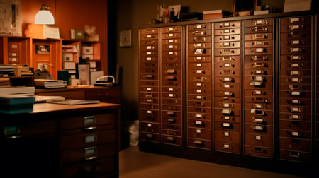 Record keeping and archiving, cabinet of folders in room. Generative AI illustrator