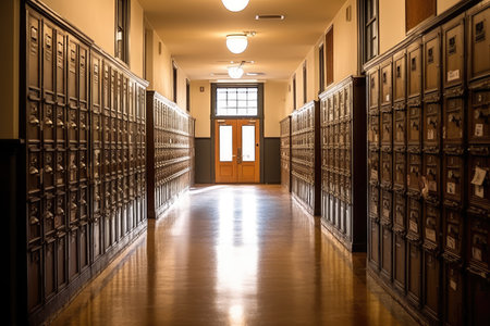 Generative AI, Row of high school lockers in the hallway, locker room