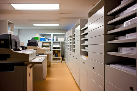 stationery room in the office with copier machine professional photography AI Generated