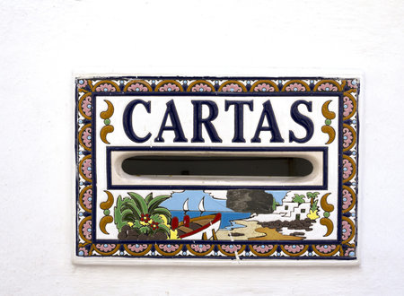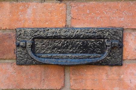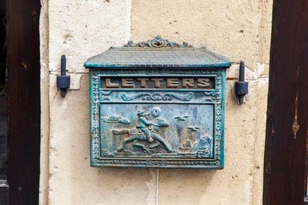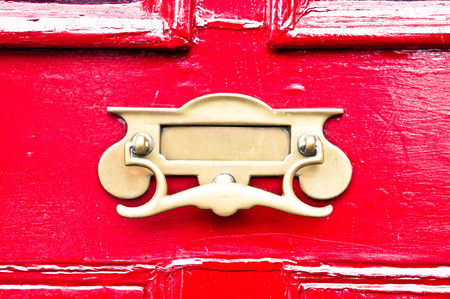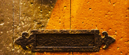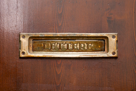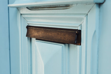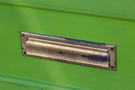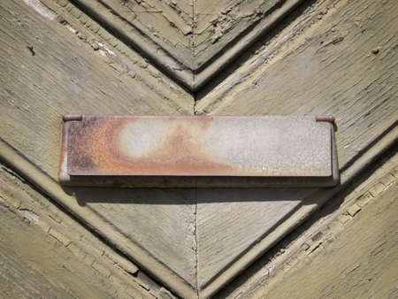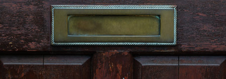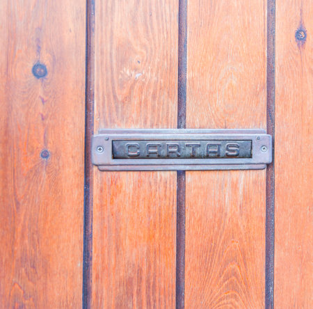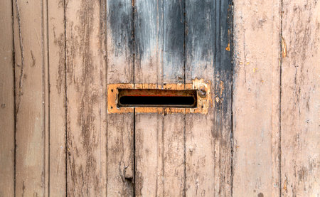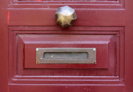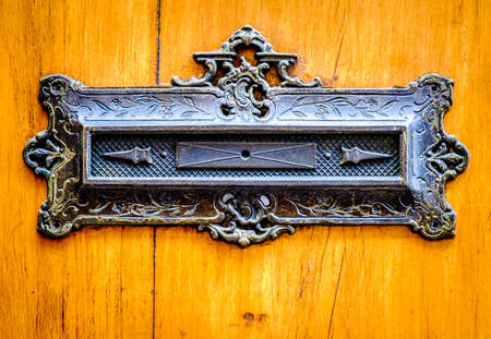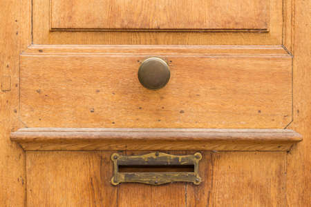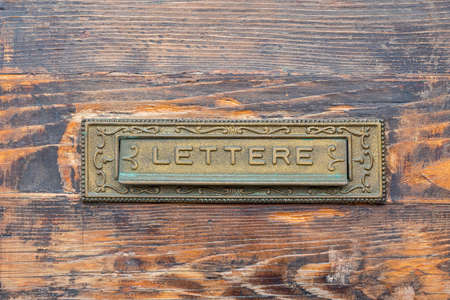 Old letterbox in the door, traditional way of delivering letters to the house, old mailbox, correspondence