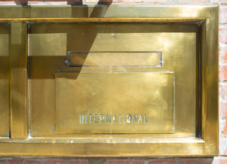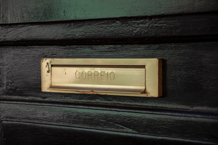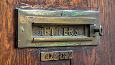 A close-up of a classic brass letterbox, weathered by time and countless messages.