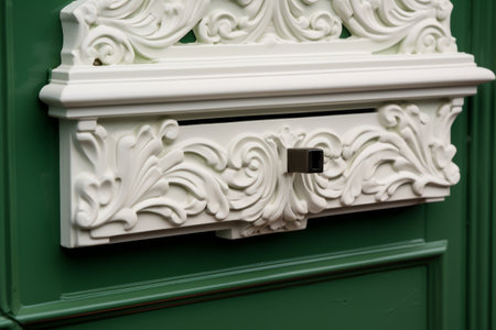 The Charming Detail: A Close-Up of a White Painted Decorative Mail Slot on a Vibrant Green Door