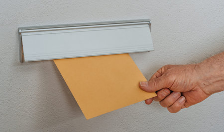 Please do not bend envelope in a letterbox of a white front door, space to add your own text.