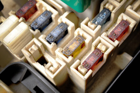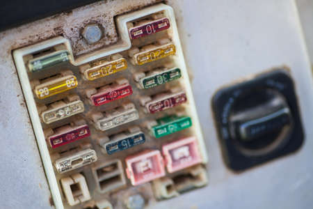 closeup fuse in fuse box of old car
