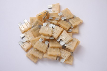 several white car fuses on white background