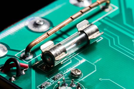 Radio part close-up. electrical fuses.