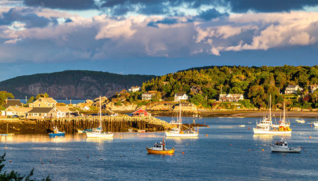 The natural beauty of the Acadia National Park in Bar Harbor (Maine, USA) during the indian summer at the waterfront