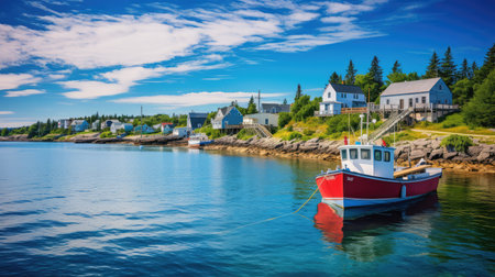 Fishing boat on the water on the Bay of Fundy in Southern New Brunswick, Canada, in the Maritime or Atlantic provinces