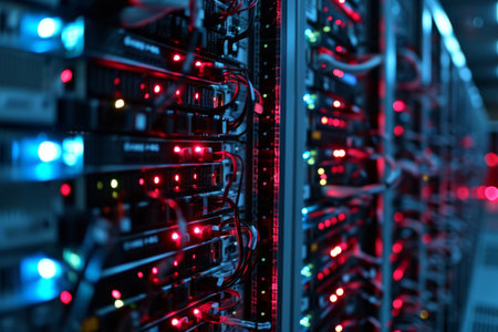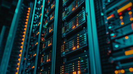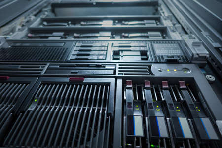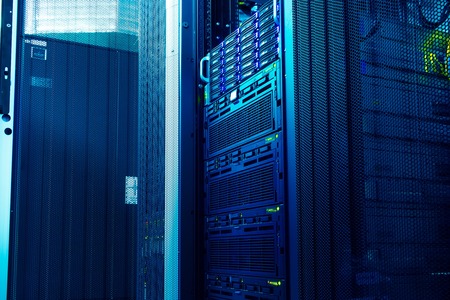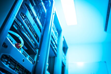 close up of servers in a data center (shallow DOF; color toned image)