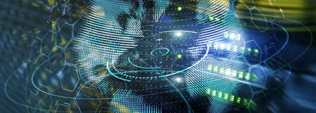 New Technology and Telecommunication Concept. 3D Planet on website header server banner