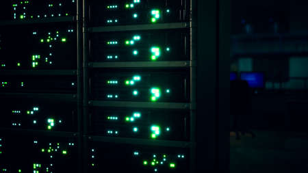 Network servers in data room Domestic Room. 3D Render. Selective focus.