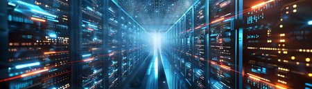 Clean industrial interior of a data server room with servers
