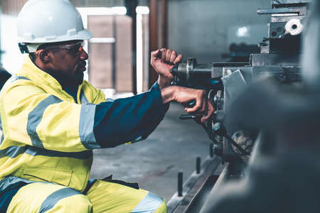 African American engineer skills quality, maintenance, training industry factory worker , warehouse Workshop for factory operators, mechanical engineering team production.