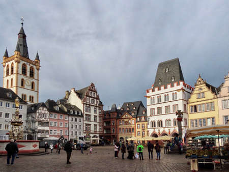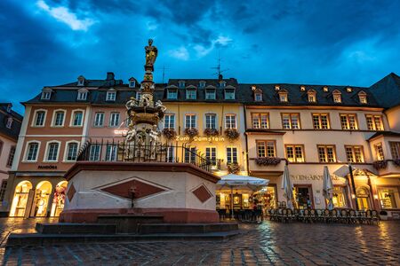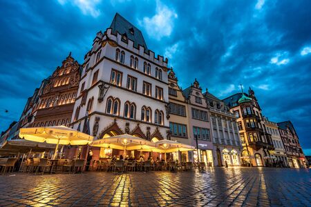 TRIER, GERMANY - SEPTEMBER 22: This is an evening view of the town square in Trier, a popular tourist destination and the oldest city in Germany on September 22, 2019 in Trier
