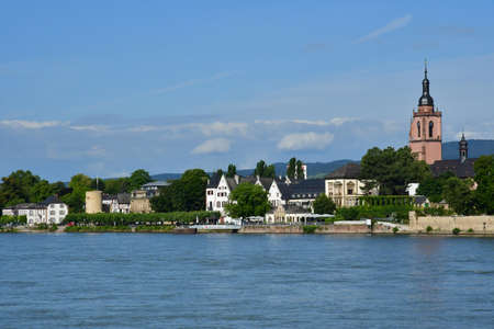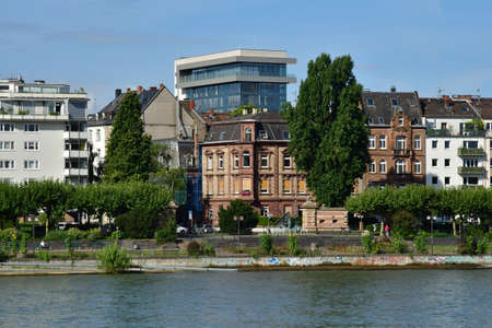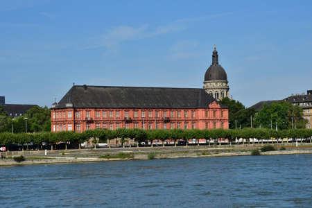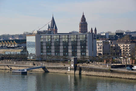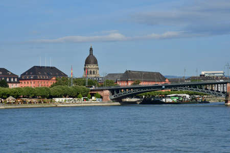 Mainz; Germany- August 11 2021: the city seen from the Rhine