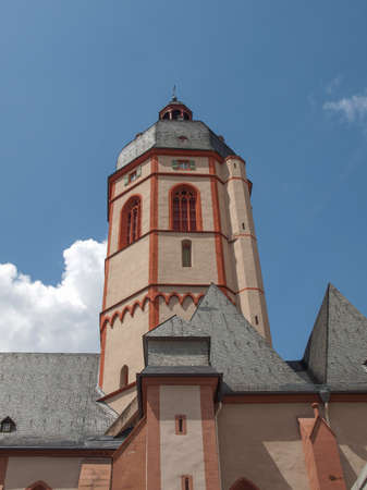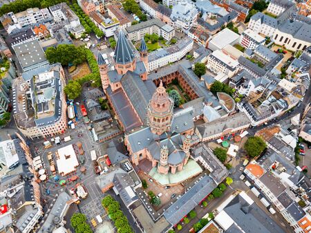 Mainz Cathedral aerial panoramic view, located at the market square of Mainz city in Germany