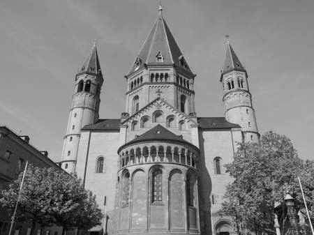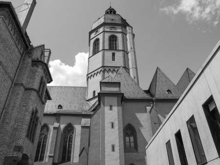 Mainzer Dom cathedral in Mainz in Germany in black and white