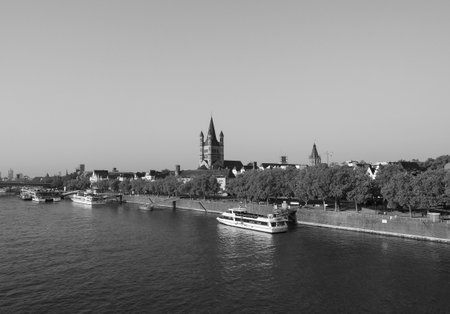KOELN, GERMANY - CIRCA AUGUST 2019: Altstadt (meaning Old Town) in black and white