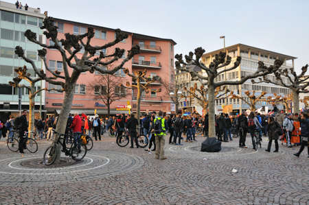 FRANKFURT, GERMANY - MARCH 18, 2015: Crowds of protesters, Demonstration Blockupy