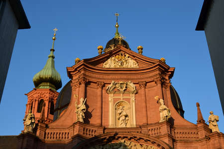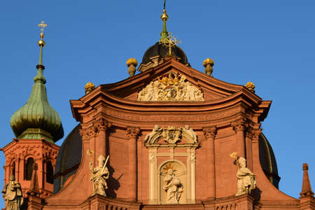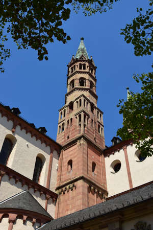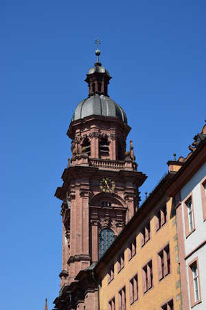Bell tower of the Basilica of St. John the Baptist in Wurzburg, Germany
