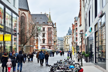 Frankfurt, Germany - January 22, 2019: Street view of Downtown Frankfurt, Germany.