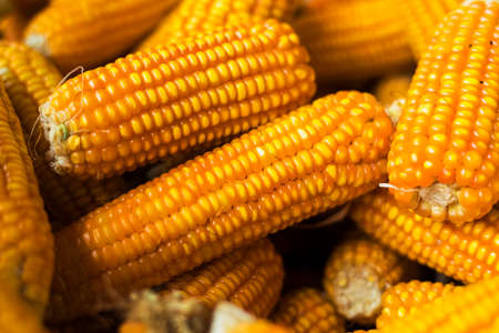 Close-up grains of ripe corn. Selective focus