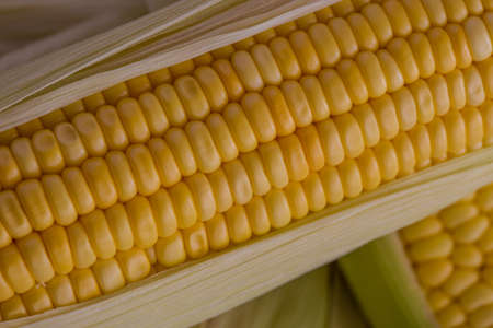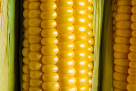 fresh sweet organic corn cobs close-up background
